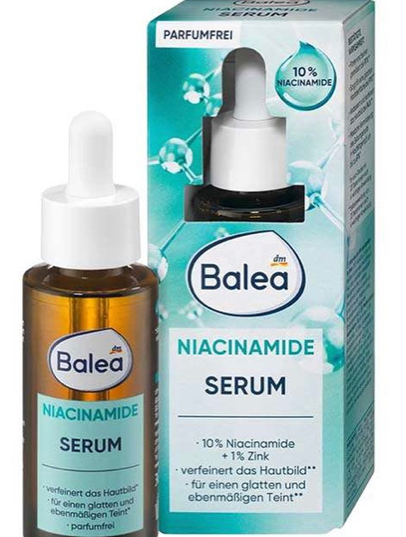 سرم نیاسینامید باله آ حاوی 10 درصد نیاسینامید و 1 درصد زینک بوده و بدون عطر و بو می باشد. این سرم منافذ بزرگ شده ی پوست را درمان کرده و با اثر کنترل کنندگی چربی پوست به مبارزه با جوش و آکنه می پردازد. سرم نیاسینامید باله آ برای انواع پوست به خصوص پوست چرب و مختلط مناسب است و خاصیت آبرسانی فوق العاده ای نیز دارد.